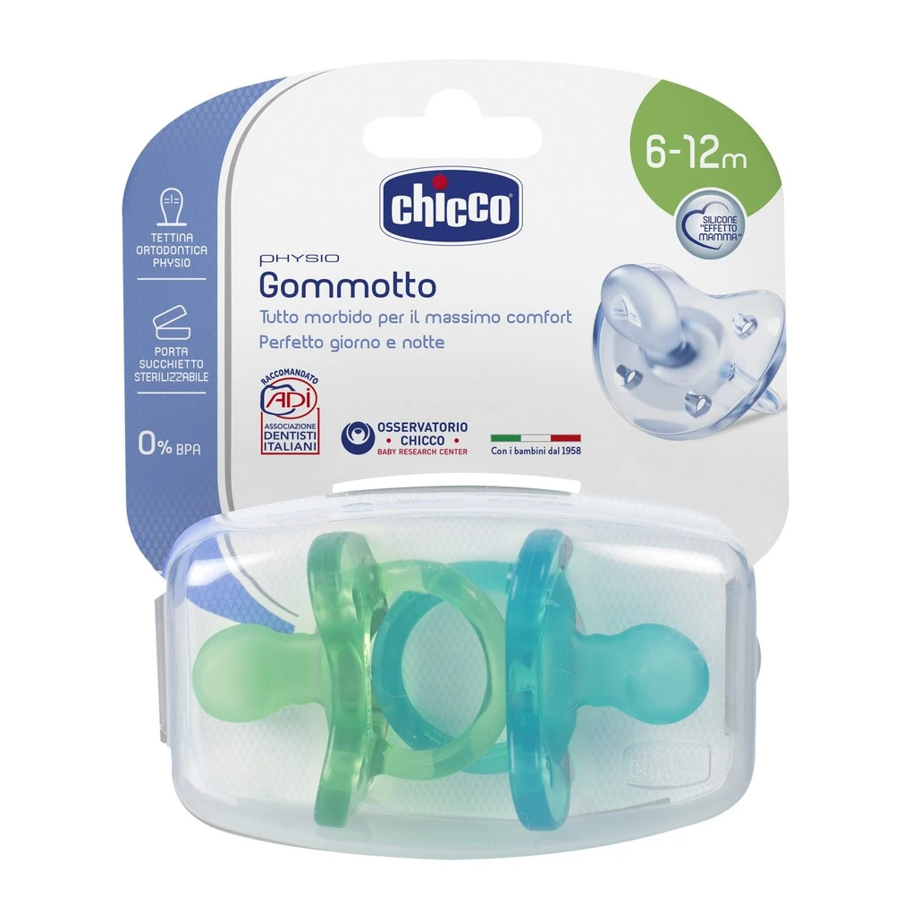 2 Gommotti Physio Silicone 6-12m Azzurro/verde