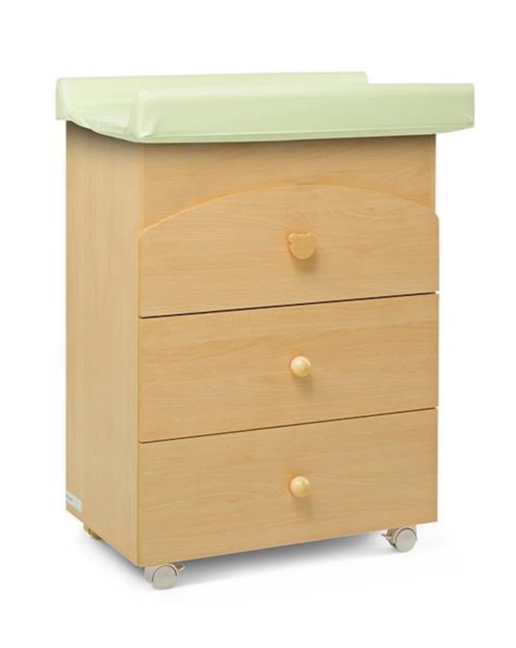 Comoda e pratica, la cassettiera Nora diventerà indispensabile per quando dovrai cambiare il tuo bambino o fargli il bagnetto. In un classico color naturale, si compone di tre cassetti con guide in metallo, il primo apribile anche con la vaschetta inserita. Il fasciatoio è composto da un piano ribaltabile con sistema di sicurezza e da un materassino sfilabile e lavabile, la vaschetta anatomica è estraibile. Le 4 ruote piroettanti con freno ti garantiranno di poterla spostare con assoluta facilità! Il prodotto verrà consegnato preassemblato.