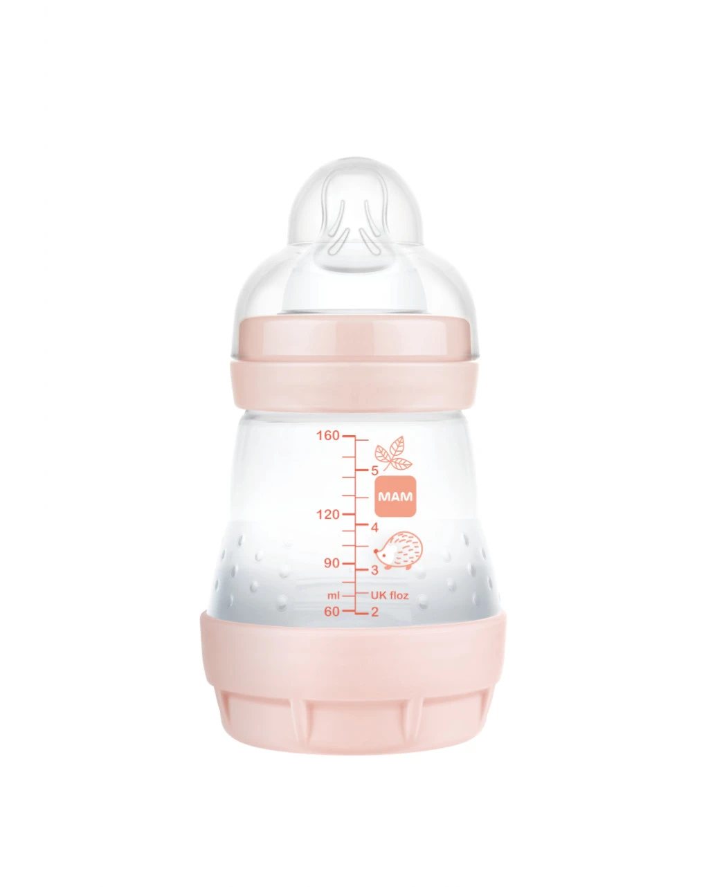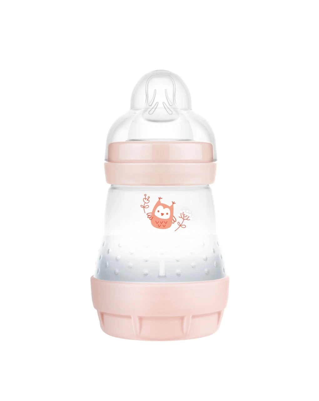 La base ventilata sul fondo del biberon è dotata di fori per il passaggio dell’aria. Durante la poppata, l’aria entra all’interno del biberon dal fondo e non si mischia al latte, prevenendo la formazione di bolle e schiuma. Il flusso del latte è così uniforme ed evita che il bambino ingerisca aria durante la suzione. I bebè possono così bere in modo rilassato. Il risultato è una riduzione del rischio di coliche, confermato dall’80% delle me¹.