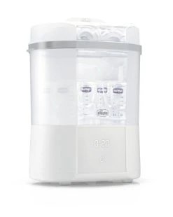 Il nuovo sterilizzatore + Asciugatura Chicco è la soluzione avanzata che combina tre cicli: Sterilizzazione (5 minuti), Dryer (30 minuti) e Sterilizzazione + Dryer (45 minuti). Caratterizzato da un’innovativa piastra rivestita in ceramica, elimina il 99,9% dei germi, garantendo una protezione di 24 ore. Dotato di spegnimento automatico e possibilità di late start fino a 2 ore, oltre ad avviso di decalcificazione. Contiene fino a 6 biberon della linea NaturalFeeling.