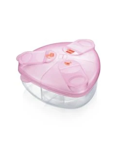 Quando si è in giro è fondamentale avere sempre con sé tutto l’occorrente per il bebè, e portare latte in polvere e integratori può diventare complicato. Per risolvere il problema la soluzione migliore è Milk Box contenitore latte in polvere, un accessorio, moderno, originale e del tutto affidabile. Suddiviso in tre comodi scomparti da 40 g di capacità ciascuno, il porta latte in polvere è leggero e poco ingombrante, tuttavia molto capiente. La particolare forma triangolare rende più semplice versare completamente il contenuto nel biberon, mentre il tappo anti-goccia a scatto assicura un uso facile, senza perdite di prodotto. La forma piatta si adatta a qualsiasi tipo di borsa, rendendo il trasporto semplice. Ciascuno scompartimento può contenere una giusta porzione di latte in polvere e grazie alla base trasparente i genitori possono sempre controllare il contenuto.