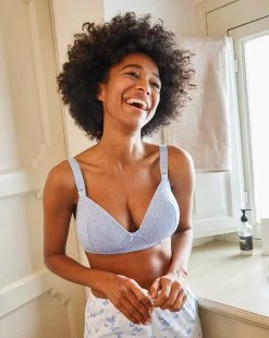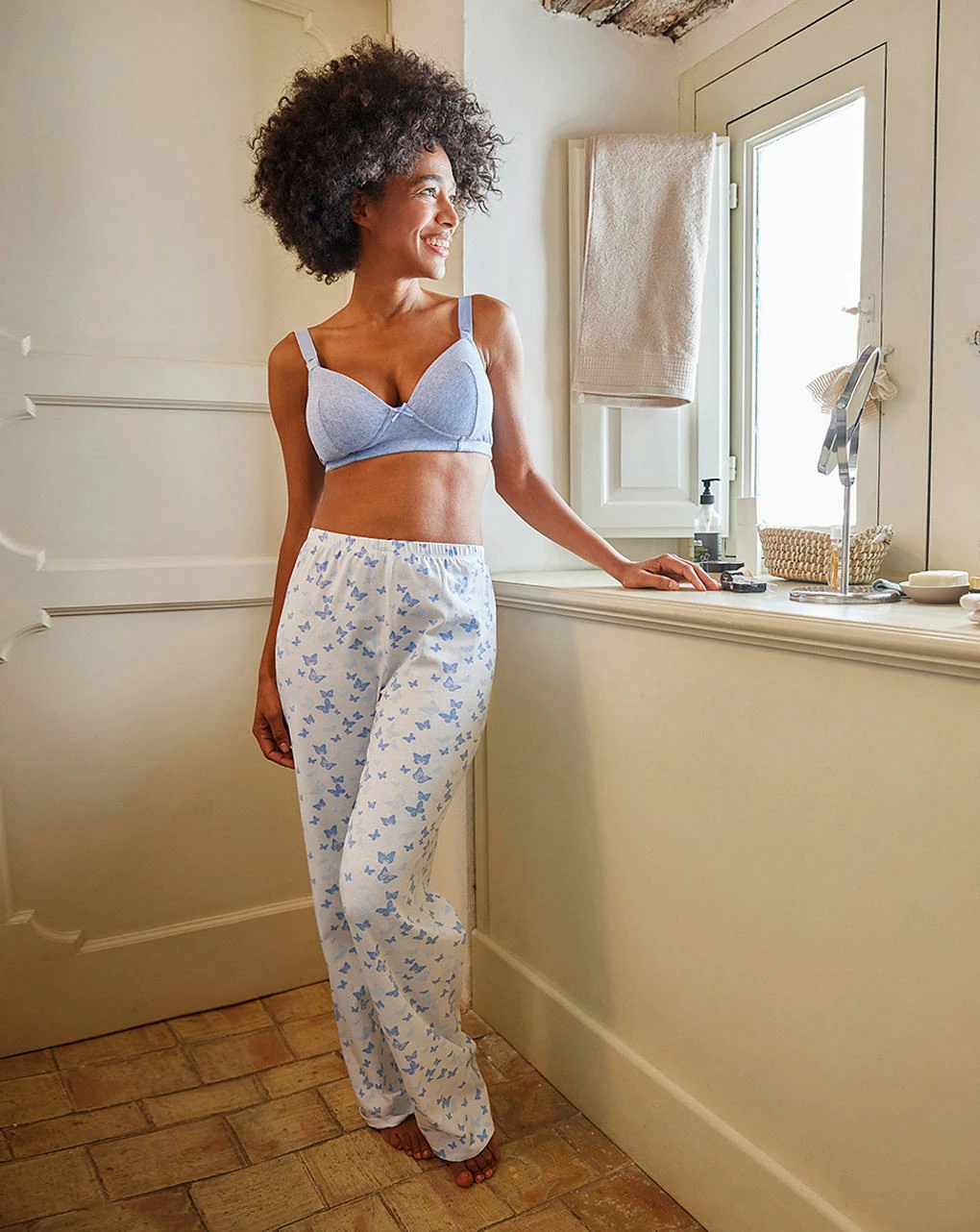 Reggiseno per allattamento senza ferretto, con coppe apribili ed elastico sotto il seno. Forma e materiali sono studiati per sostenere il seno, senza costringerlo. Con coppe imbottite e spalline regolabili, il reggiseno per neo mamme si adatta perfettamente ai cambiamenti di taglia e di forma del seno durante la fase di allattamento. Il piccolo fiocco cucito al centro aggiunge al reggiseno un tocco dal sapore romantico.