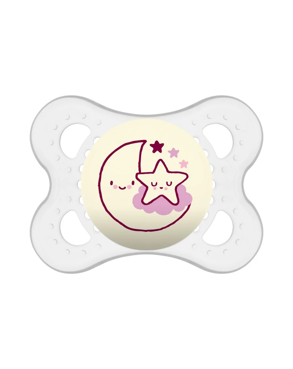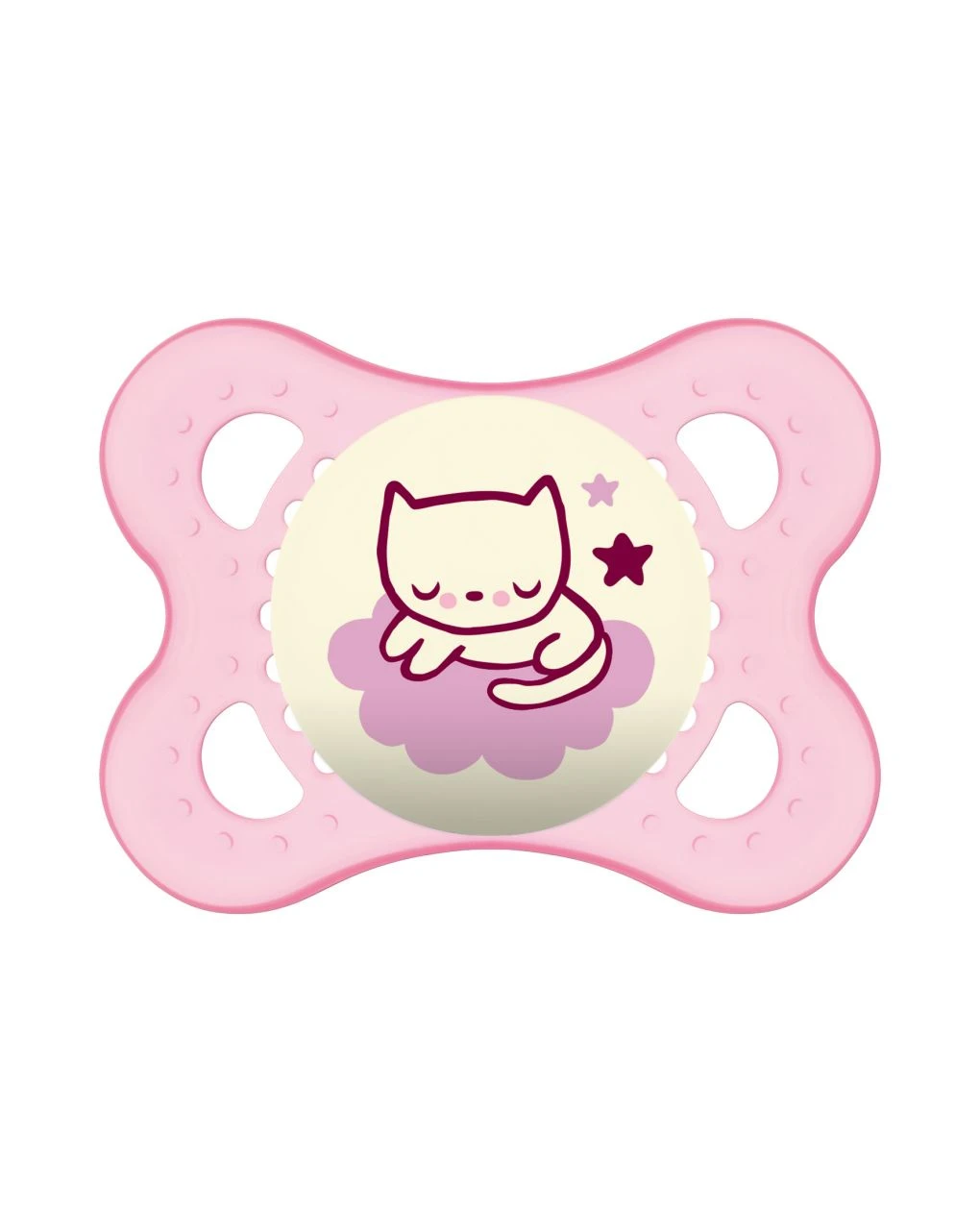 Il ciuccio Original Night è adatto a bimbi di 2-6 mesi ed è conforme alla norma EN 1400. Inoltre, esso è ovviamente privo di BPA e BPS. Il colore rosa di entrambi i ciucci rende il set ideale per le bambine.