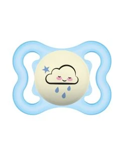 Quando il bebè di notte chiede il ciuccio, non è piacevole mettersi a cercare. Il bottone del ciuccio MAM Supreme Night si illumina al buio, può essere trovato facilmente dal bimbo o dai genitori, contribuendo a notti più serene.