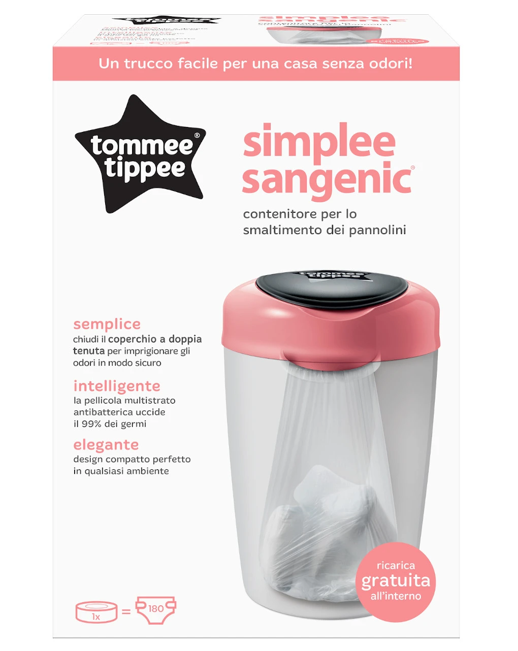 Per essere una persona così piccina, un bebè riesce a generare un gran disordine! Il contenitore per lo smaltimento dei pannolini Tommee Tippee Simplee Sangenic è la soluzione semplice, elegante e salva-spazio per mantenere la cameretta del bambino in ordine e senza odori. La pellicola multistrato e il coperchio ermetico intelligente trattengono i cattivi odori, evitandoti numerosi viaggi fino al bidone dei rifiuti all’esterno! Il contenitore per nursery è adatto per lo smaltimento di pannolini, batuffoli di cotone, salviette e prodotti igienici.