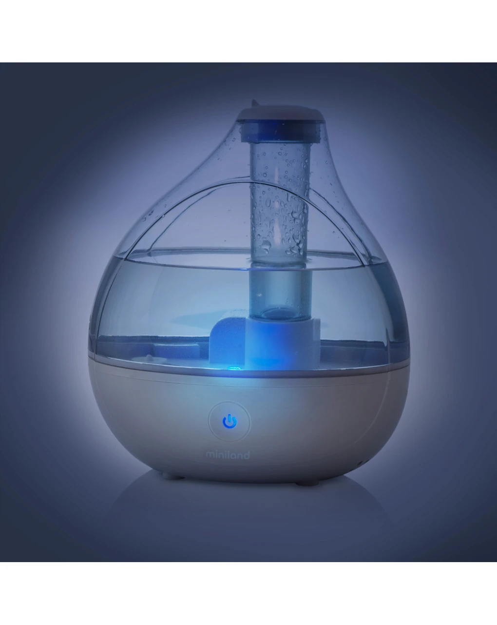 Umidificatore a freddo compatto che può essere collocato ovunque. Con sistema di emissione di vapore freddo mediante ultrasuoni. Design compatto con ugello orientabile. Capacità del serbatoio d’acqua: 1,1 litri. Flusso di vapore regolabile (max 120 ml/h) con quadrante frontale. Durata: fino a 9 ore con flusso massimo. Ideale per locali con superficie di circa 15m2. Sistema di protezione per livello d’acqua insufficiente, con indicatore luminoso. Con tenue luce da compagnia per il bambino. Funzionamento silenzioso, in modo da poter essere usato per tutta la notte. Disconnessione automatica quando il livello dell’acqua è insufficiente. Beccuccio superiore ruotabile per dirigere il vapore. Luce notturna blu.